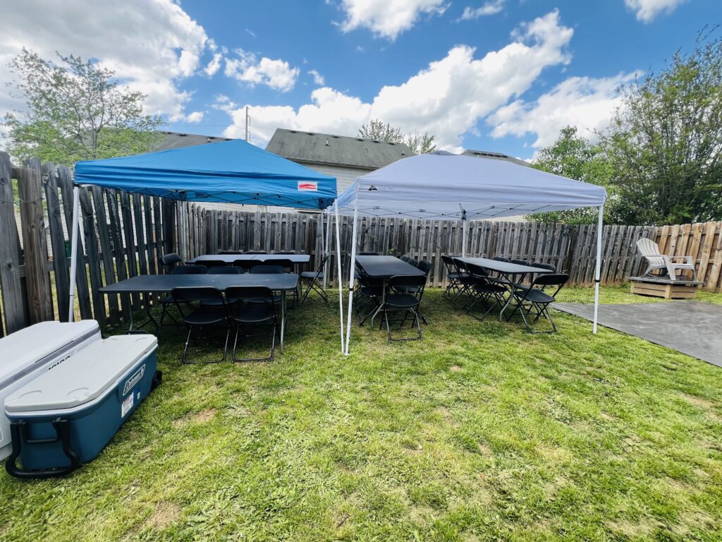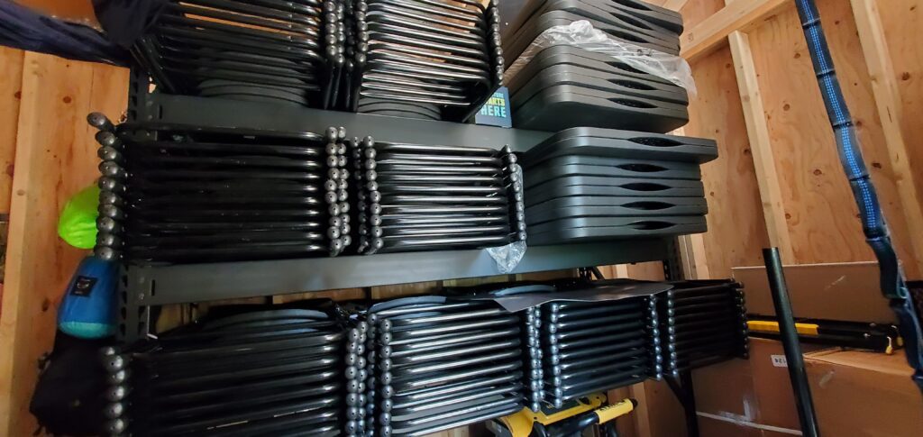 Add seating and surface space for food, gifts, or guests. We rent basic tables and chairs.